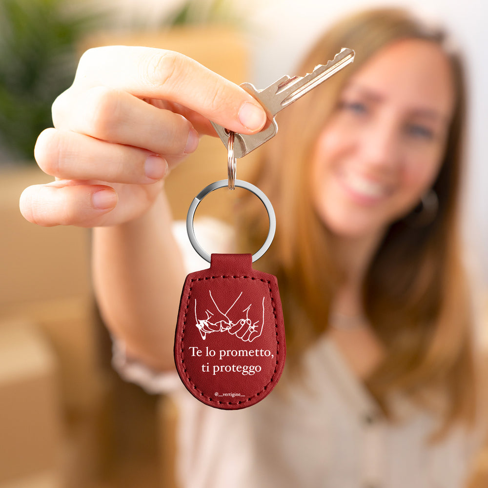 Portachiavi in pelle Ti proteggo dell'album Amore con te di Vertigine con anello in metallo, Disponibili in 6 Colori, Stampa di Alta Qualità